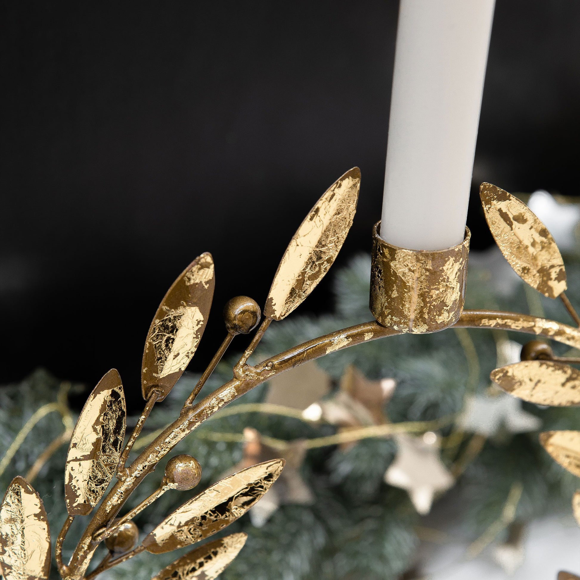 Der "Kerzenhalter goldener Blätterkranz" der dänischen Marke Bungalow DK passt aber nicht nur zur Adventszeit sondern erfreut Dich das ganze Jahr über.