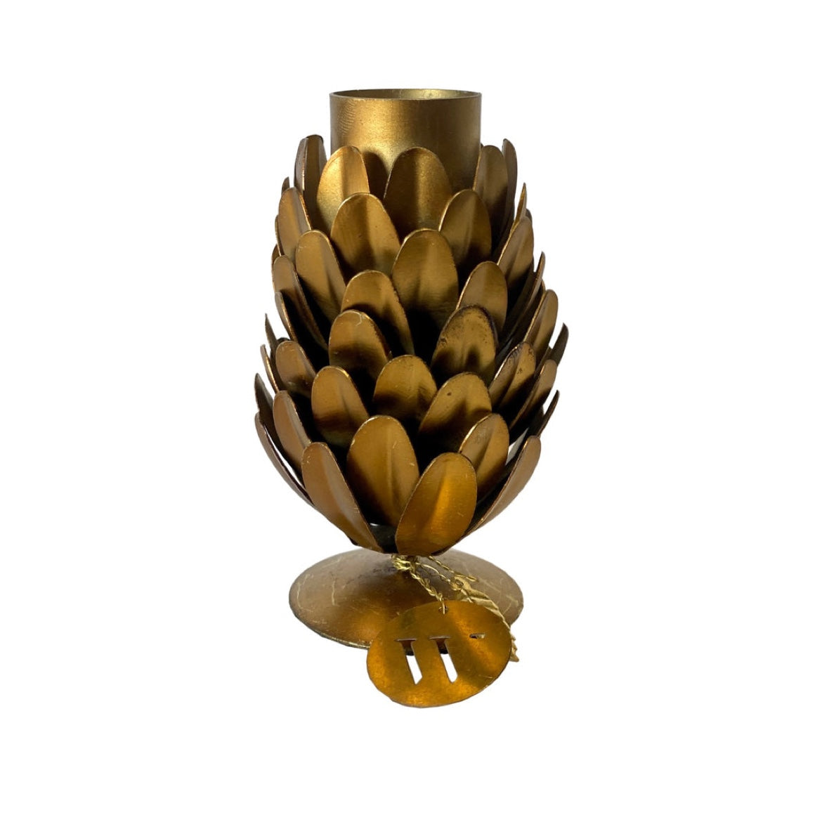 Der Kerzenhalter „Pinienzapfen“ aus der Weldaad-Kollektion 2025 verbindet Naturinspiration mit handwerklicher Eleganz. Aus matt goldenem Messing gefertigt, zeigt er die detailreiche Form eines Pinienzapfens – ein Symbol für Wärme und Geborgenheit.