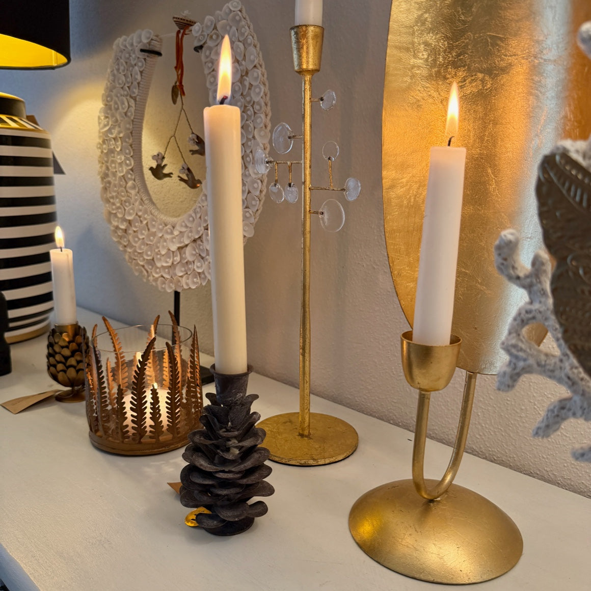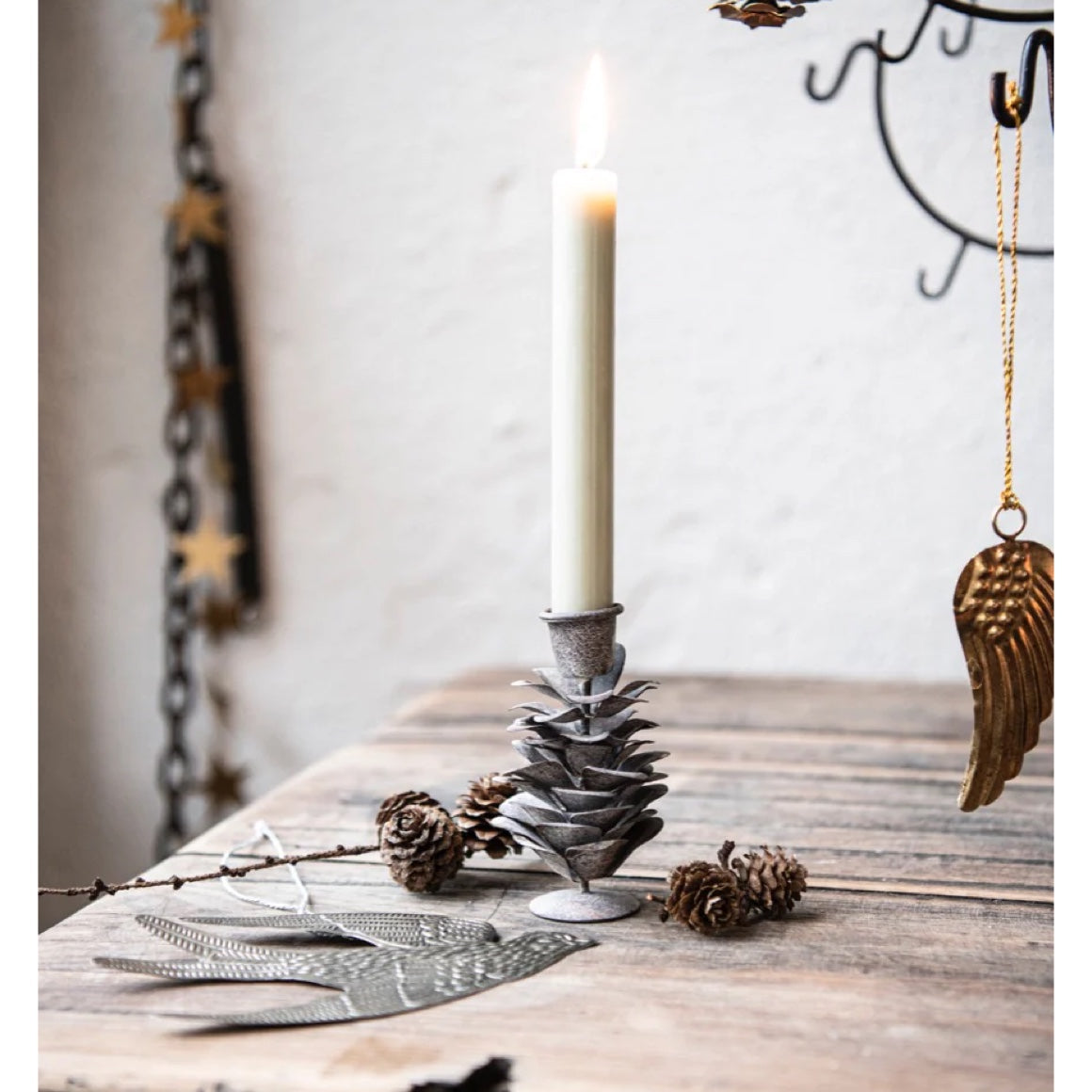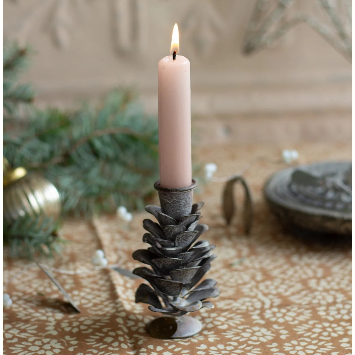 Im Kerzenschein entfaltet der Tannenzapfen seinen ganz eigenen Zauber: Das matte Grau mit dem Frost-Effekt wirkt wie ein Hauch von Winterwald, während die Kerzen Wärme und Geborgenheit schenken. Ein wunderschönes Detail für stimmungsvolle Abende im Advent.