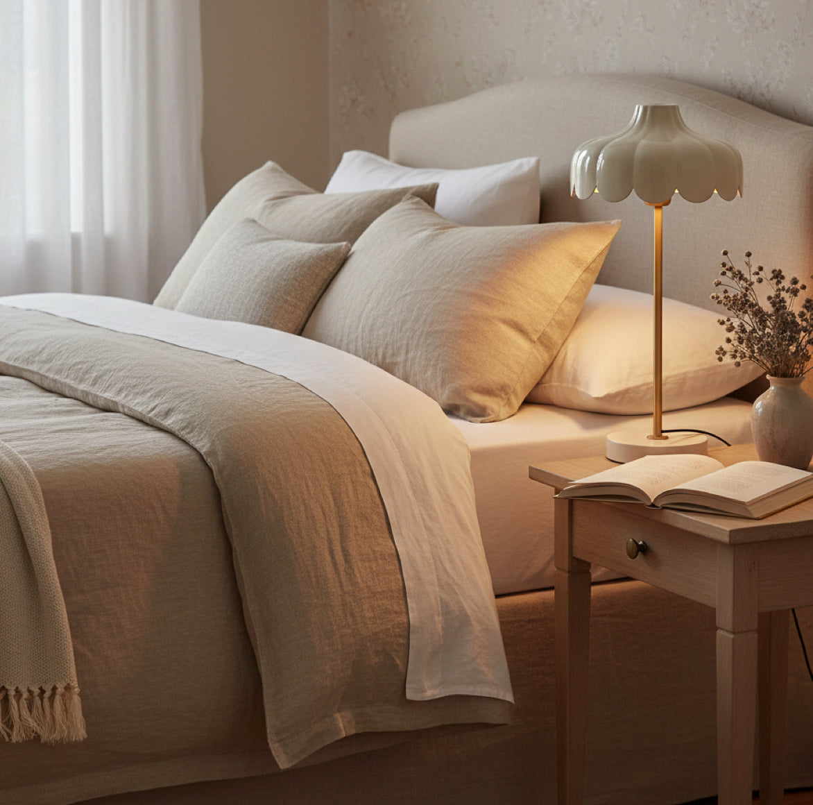 Nachttischlampe Iris in Beige – Eleganter Blütenzauber im Vintage-Stil
