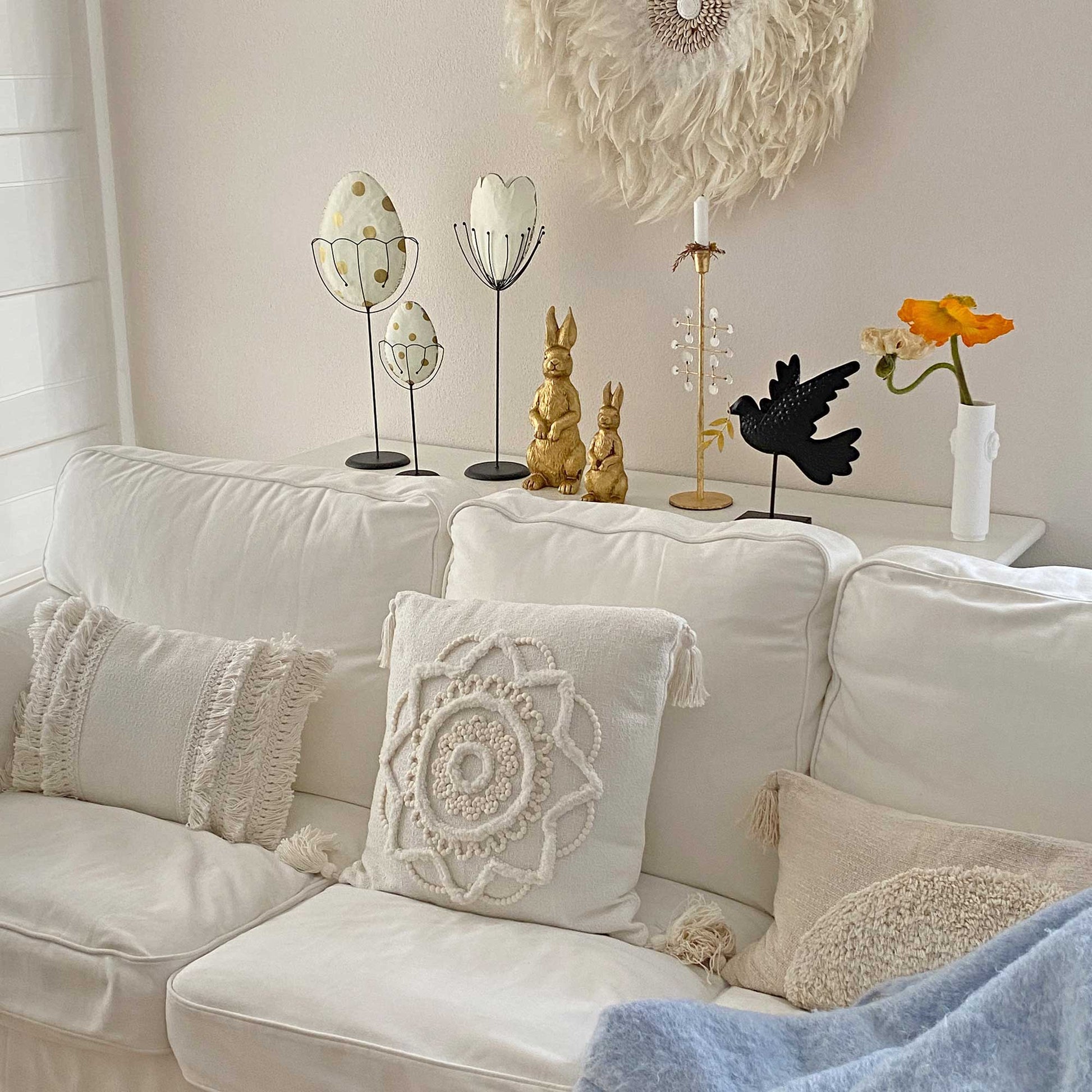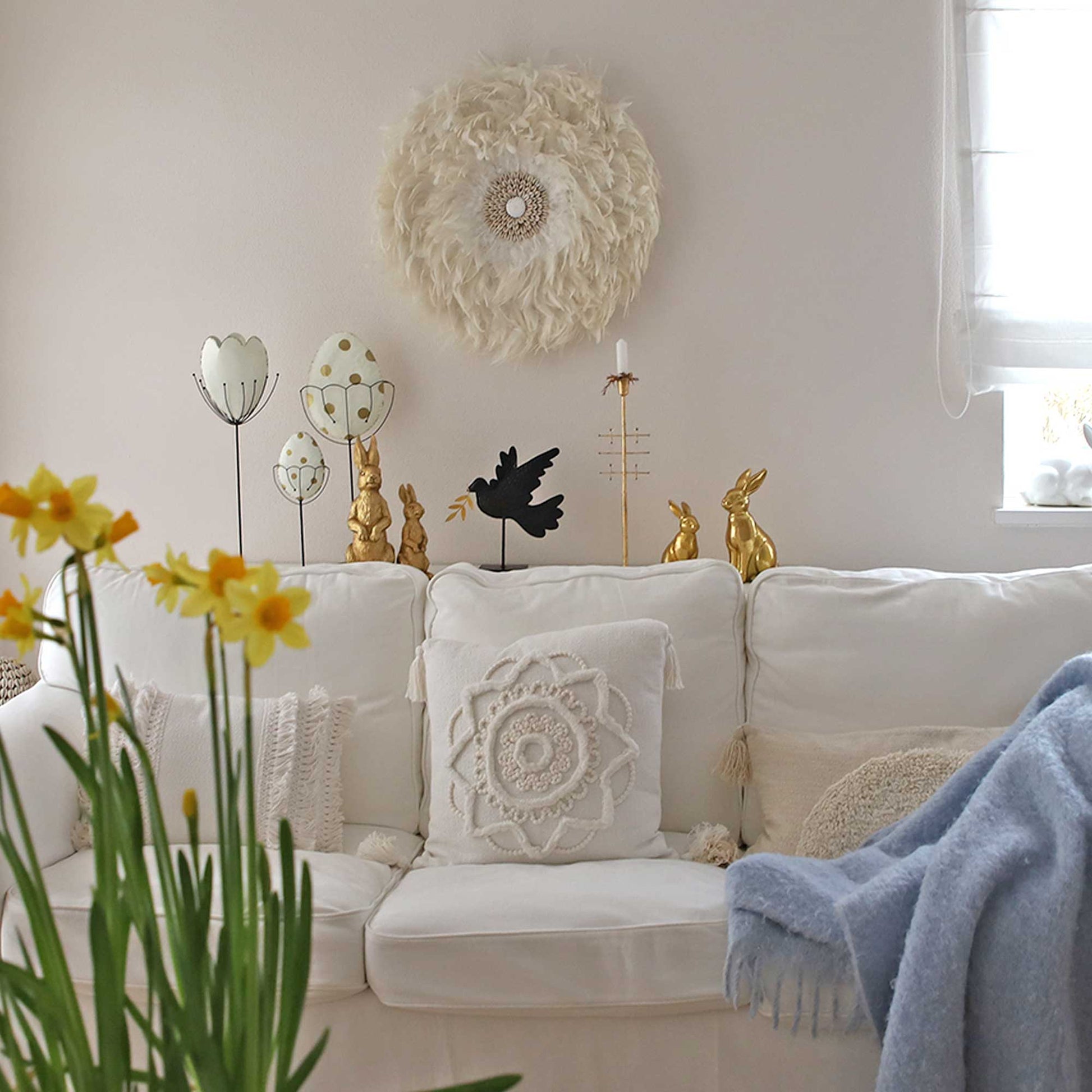 Das große Osterei ist 50 cm hoch und das kleine Ei ist 30 cm hoch. Eine wunderschöne Osterdeko im modernen Landhaus Stil.