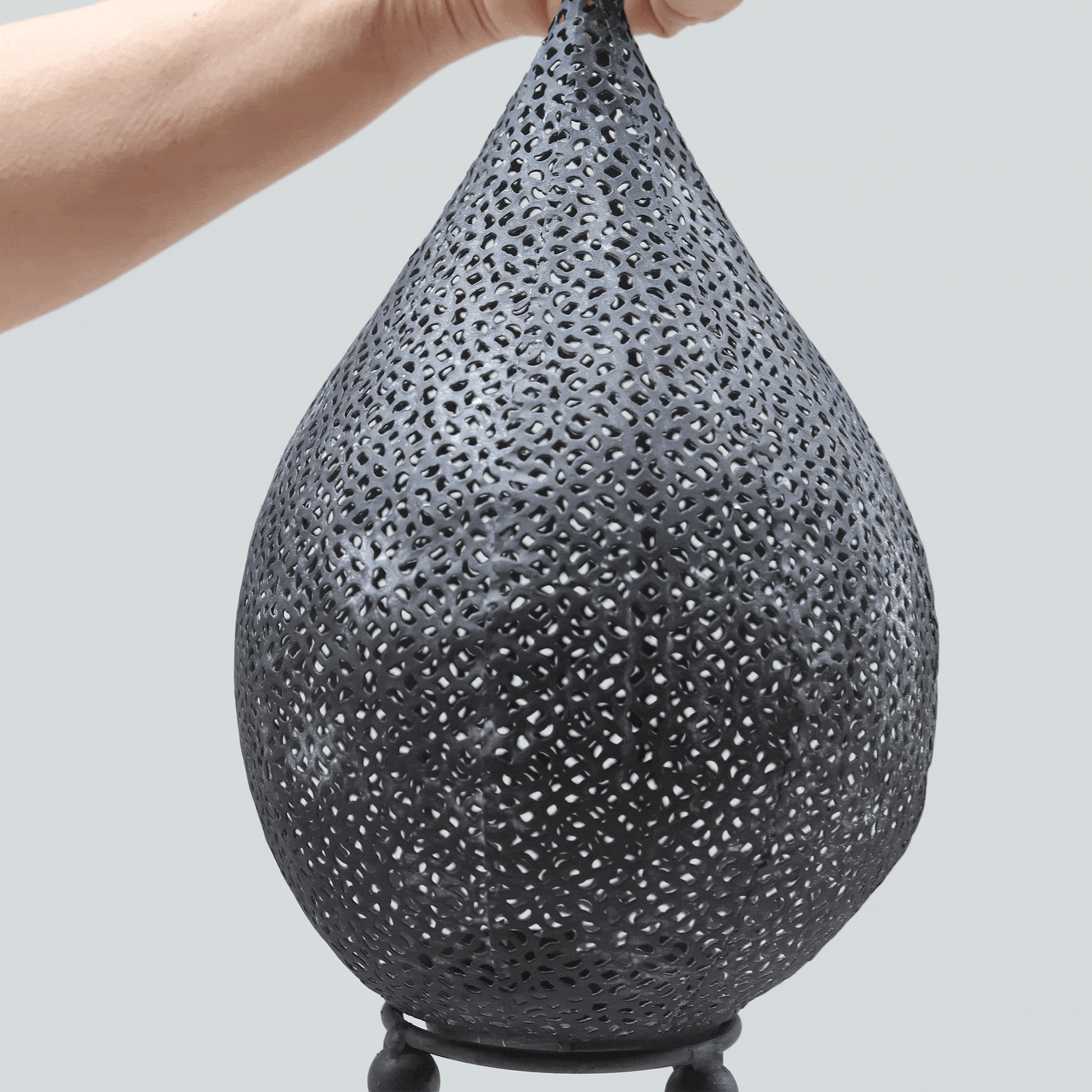 Falls Sie Kerzen in dieses Windlicht stellen und anzünden, wird das Metall heiß. Eine Alternative kann ein LED-Licht mit bewegter Flamme sein, dann erwärmt sich das Metall nicht.