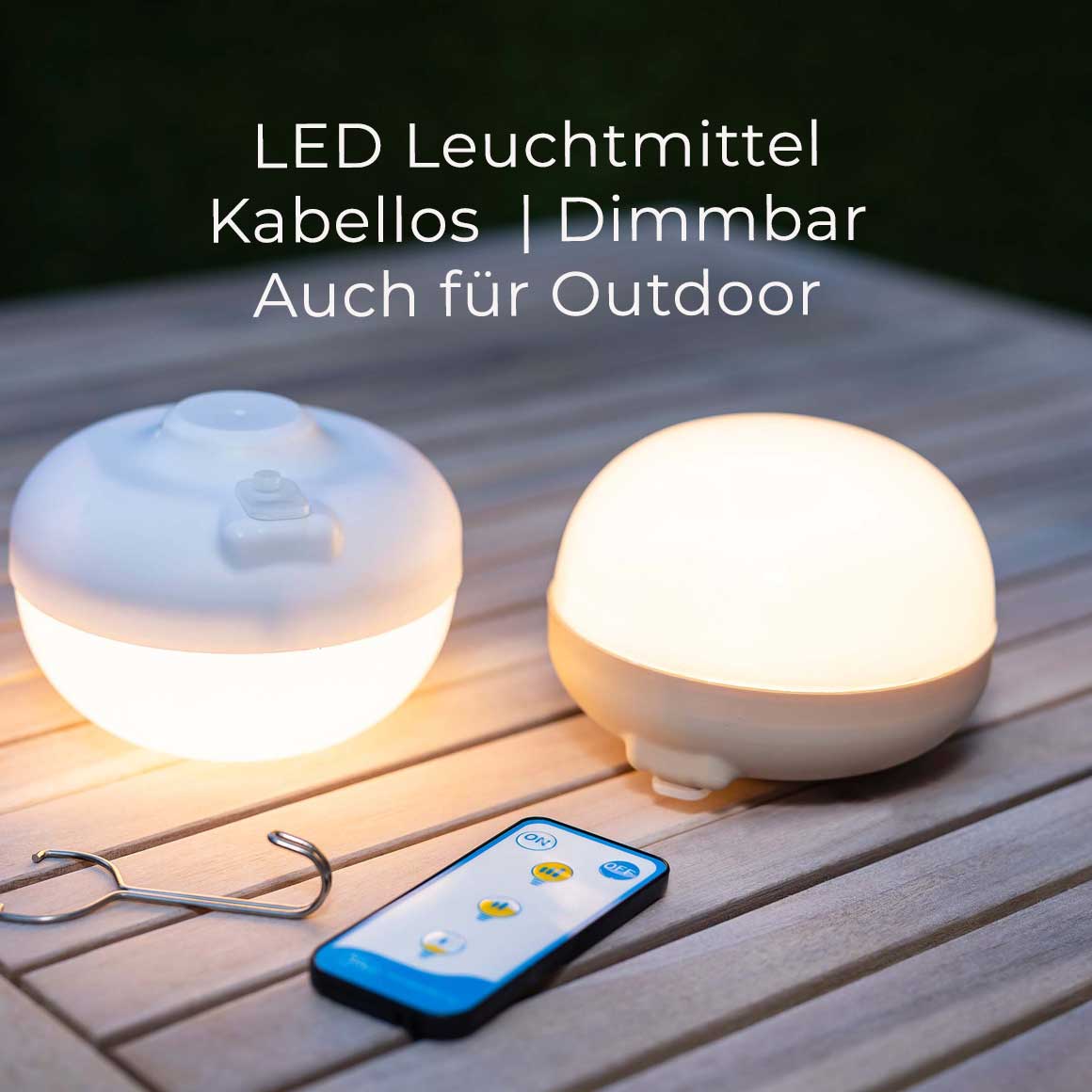 Diese Glühbirne wird mit einer Fernbedienung geliefert, mit der Du sie ein- und ausschalten und dimmen kannst. Sie hat 900 Lumen und eine Brenndauer zwischen 6 und 20 Stunden, je nach Intensität.